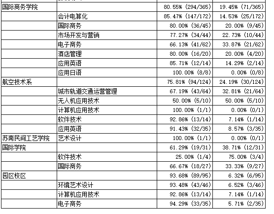 苏南国家自主创新示范区建设逮到了大批量高端技术技能型人才实现充分就业,选择留在江苏发展的毕业生超1200多人;大部分毕业生选择在经济发达的长三角一带上海、江苏、安徽、浙江等省份、市区发展。其他毕业生多数选择回生源所在地就业。由于升学、待就业毕业生达16 人,所以学院年终就业率未达到100%。