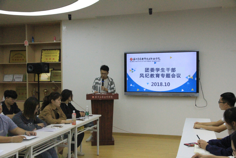 为提升我校团学干部廉洁自律意识,针对近期少数高校发生的学生干部官僚化、功利化、庸俗化问题,10月8日晚19:30,团委在青春健康俱乐部召开学生干部风纪教育专题会议。学生处邹艳星处长、团委胡赛书记、任航老师以及团委各学生组织的全体学生干部参加会议,会议由团委副书记王邓安同学主持。