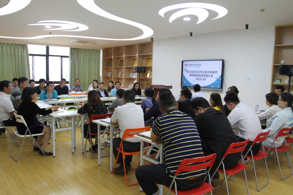 9月12日,我校学习贯彻习近平总书记给中央美术学院老教授重要回信精神座谈会在实训楼会议室召开。学校党委副书记倪筱琴、副校长陈家颐出席会议,党政办、学工部、教务处、团委、艺术与建筑学院、人文社会科学学院等单位负责人参加了会议。会议由党政办负责人王绍福同志主持。