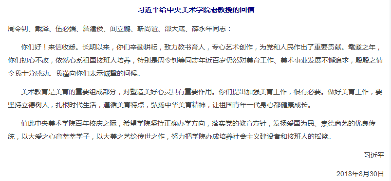 会上,徐院长带领大家认真学习领会习近平总书记重要回信精神。他说:习近平总书记的回信充分体现了党中央对美育的高度重视,对于如何在美术教育中加强美育,如何通过美术教育来推进美育,具有十分重要的指导意义。学院要按照总书记的要求,进一步加强美育研究,在教育教学中融入美育、在艺术设计创作中突出美育。徐院长要求我院广大教师,在教学中,按照学科建设的框架和标准做好发展提升美育工作,结合时代发展的潮流,用自己所学去创作体现属于这个时代的艺术作品。(艺术与建筑学院)