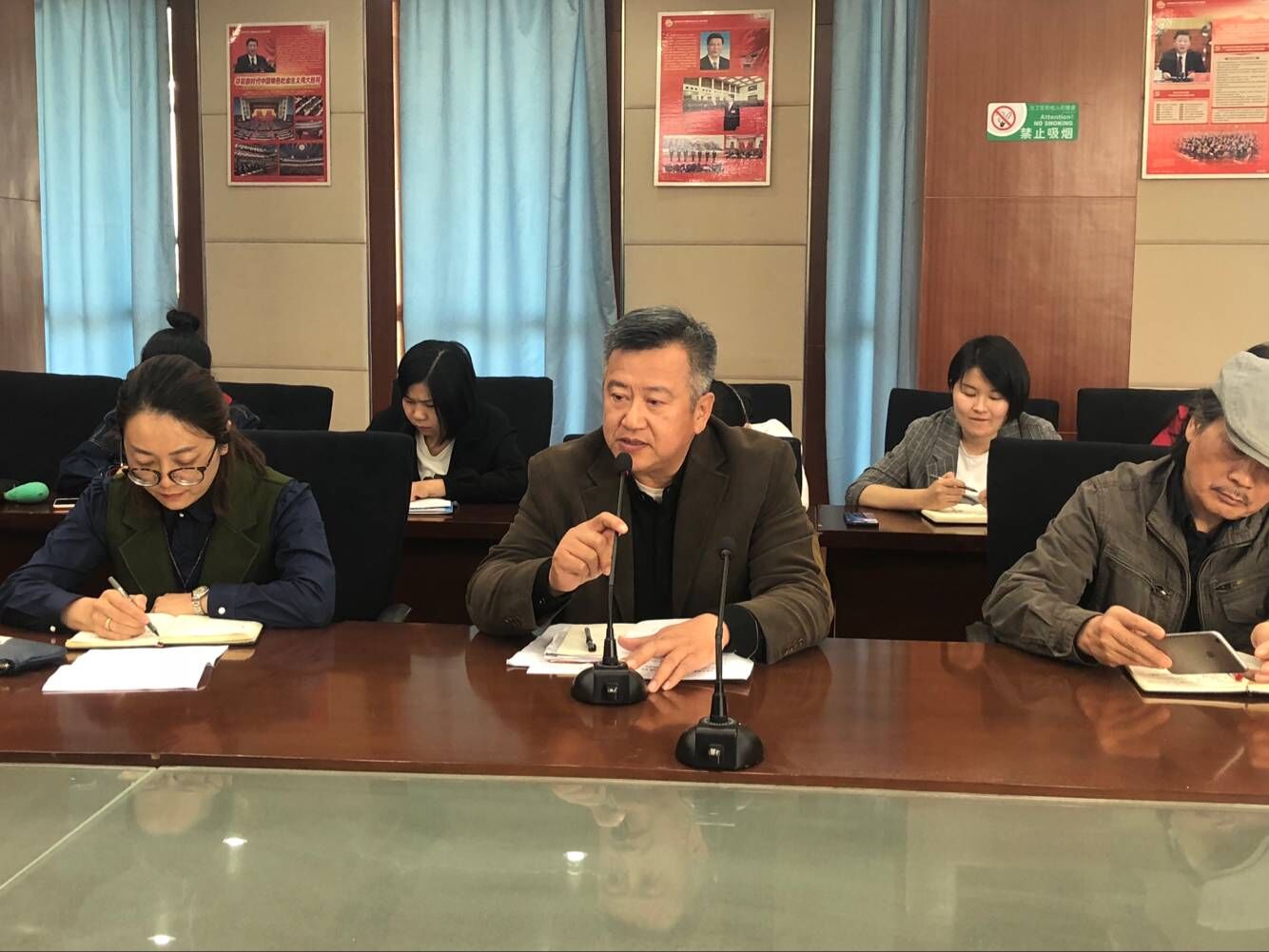 8月30日,习近平总书记给中央美术学院8位老教授回信,对他们长期以来不改初心、心系祖国接班人培养予以充分肯定,并就做好美育工作,弘扬中华美育精神提出殷切期望。习近平总书记的回信精神迅速传遍了全国,他的关切之情和殷切希望,极大地鼓舞和激励了我院师生。9月19日,我院在实训楼会议室召开会议学习贯彻习近平总书记给中央美术学院老教授重要回信精神,我院全体教师和学生代表参加了会议。会议由吴佳芬副院长主持。