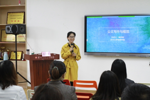 10月25日下午,苏州大学凤凰传媒学院张梦晗老师来到我校作了“公文写作与规范”的专题培训。学校机关各部门行政人员、全体学工人员,各二级学校行政、教务秘书以及辅导员参加了培训。培训由院长办公室主任王绍福主持。