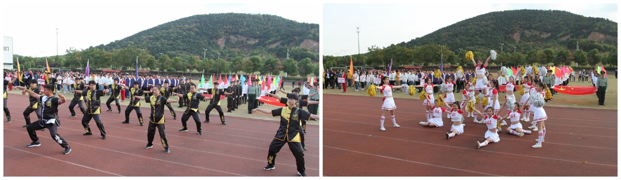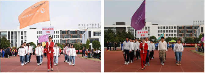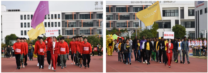 伴着《运动员进行曲》的激昂乐声,教工方阵以及各二级学院方阵迈着整齐的步伐,依次进入赛场。各个方队精神抖擞,纷纷在主席台前尽展风采。一群巾帼不让须眉的女生组成的城市公共服务学院方阵,踏着坚定的步伐,展现了当代大学生奋发向上的风姿。28名巴巴多斯留学生组成的国际学院方阵满怀热情与激情,从他们绽放的笑容中诠释出融合与开放的文化内涵。而表演方队激情演绎的舞狮、太极拳、啦啦操节目成功更是赢得了全场师生的阵阵掌声,将开幕式推向高潮。