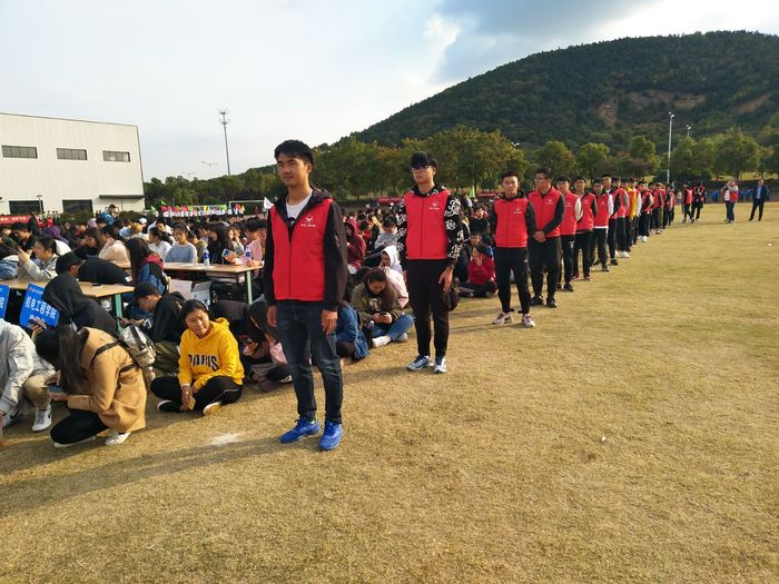 在运动会教工项目中,辅导员老师更是踊跃参与,身先士卒,其中孙宇珊老师包揽800米、跳远第一名,方世超老师斩获1500米第一名,杜相峰老师1500米第二名,机电团队在4*100米接力赛中荣获第二名。老师们的奋力拼搏极大的激励了场上的运动健儿们,机电学院啦啦队的摇旗呐喊更使得健儿们斗志昂扬;机电学院志愿者以亲人般的温暖给每一位运动员送去无微不至的照顾和服务。
