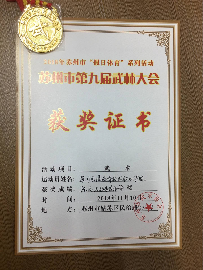 中华武术历史悠久,源远流长,千载传承,是中华优秀传统文化的重要载体和组成部分。我校太极拳课程已开设4年,在顾吉诚老师的指导下2016—2018年太极拳成绩优异,每年在省、市成绩都是名列前茅。武术协会的30多名同学艰苦训练、充满活力、勇于挑战,他们因“学会做人,学会生存,发扬中华武魂”的宗旨聚集在一起,对武术的热爱使他们始终坚持“强大的不是拳头,而是一种精神”的理念,我们衷心祝贺这群热血青年在取得成绩的同时,能继续在这条路上走得更远更精彩。(团委)
