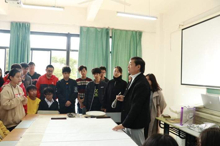 在绘制过程中,廖军教授从构图到运笔、着色、细节、画面调整等方面逐一讲解,力求让同学们了解国画创作的每一个步骤。廖军教授还指出绘画要多观察、多思考、多练习、多学习前人经验,让同学们在今后的艺术道路中能够坚持实践。