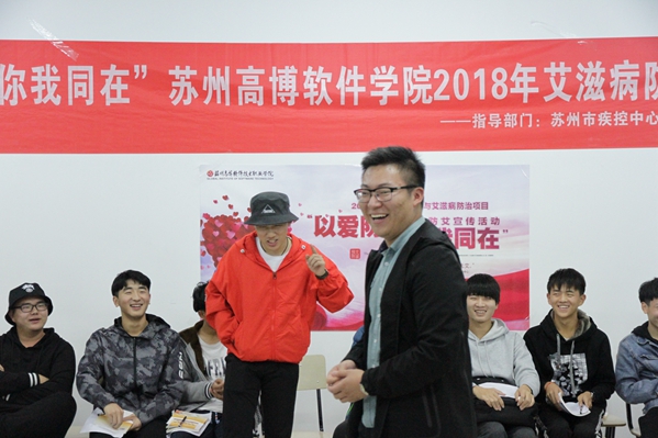 13日晚5场同伴活动同时启动,5对主持人,涉及9个班级共235个同学在轻松、欢快的氛围中接受同伴教育。活动由自我介绍、脱敏游戏、性与生殖健康知识讲解、预防艾滋病的互动游戏、安全套演示等环节组成。一开始面对整个略显敏感的主题,大家还有点羞涩,通过在主持人的带领下,在热身游戏的欢乐氛围中,大家很快就融入进来,积极参与互动,尤其在关于艾滋病的相关知识部分,帮助大家澄清了一些误解,比如礼节性的亲吻不会导致感染艾滋病、蚊虫叮咬也不会传染艾滋病,并且在性接触传染艾滋病这个点上大家明确了没有危险的人群,只有危险的行为,预防艾滋要从树立健康科学的防艾意识做起。