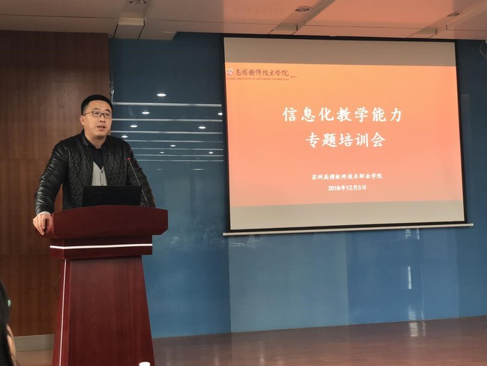 2018年12月5日,教务处组织学院老师参加了“信息化课程建设、管理与应用+移动教学”教师培训会。特邀请了苏州工业职业技术学院的程雪敏副教授与超星公司的马琴经理,分别就江苏省信息化教学大赛的参赛经验分享和超星公司“一平三端”智慧教学平台的应用功能介绍进行演讲报告。陈家颐副院长及各二级学院60余名骨干教师参加了本次培训会。