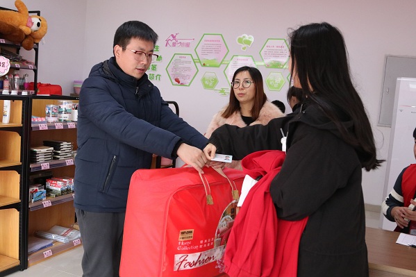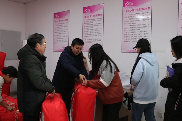 活动前期我们通过摸查,筛选出了96位符合爱心小屋受助对象的建档立卡家庭、最低生活保障学生、残疾学生、突发意外等类型学生进行精准资助,每位受助学生可在每月凭无辨识爱心兑换券前往爱心小屋兑换所需的生活物资。本次帮扶活动,学院领导与困难学生面对面、心贴心亲切交谈,了解困难学生在生活上、学习上存在的问题和困难,倾听他们的心声和诉求,亲切的告知学生要有克服困难的勇气,树立自立自强的信心,叮嘱学生注意保暖,为他们赠予棉被,与此同时向他们传达了高博师生的关心与问候,让帮扶的学生感受高博的温暖。