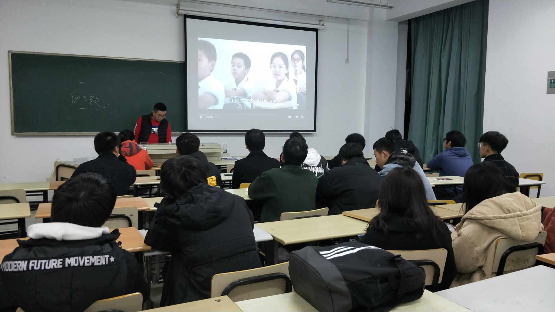 1828班在观看“咳嗽礼仪”健康宣传视频