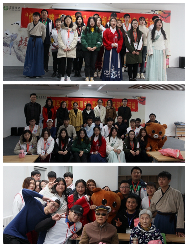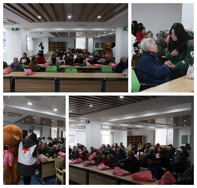 学生志愿者们为长者们表演了海草舞、古风歌舞表演《墨梅》以及小合唱《强军战歌》,博得了阵阵掌声。在老人们的道谢和不舍中结束了这次主题党日活动。敬老、爱老、尊老是我们中华民族的传统美德,自今年7月院红十字会建立了社会实践基地以来,从9月起每周一次前往敬老院和养老院陪伴老人,或是组织演出慰问,或是准备各种手工陪着老人一边聊天一边制作。经过这个学期的相处,长者们对我们的志愿者们都很喜欢,每次见面老少拉着手边说边聊特别温馨。本学期的活动虽然告一段落,但下学期我们的“博爱课堂”仍将继续,用爱陪伴老人们,给他们的晚年生活送去些许温暖和欢乐。