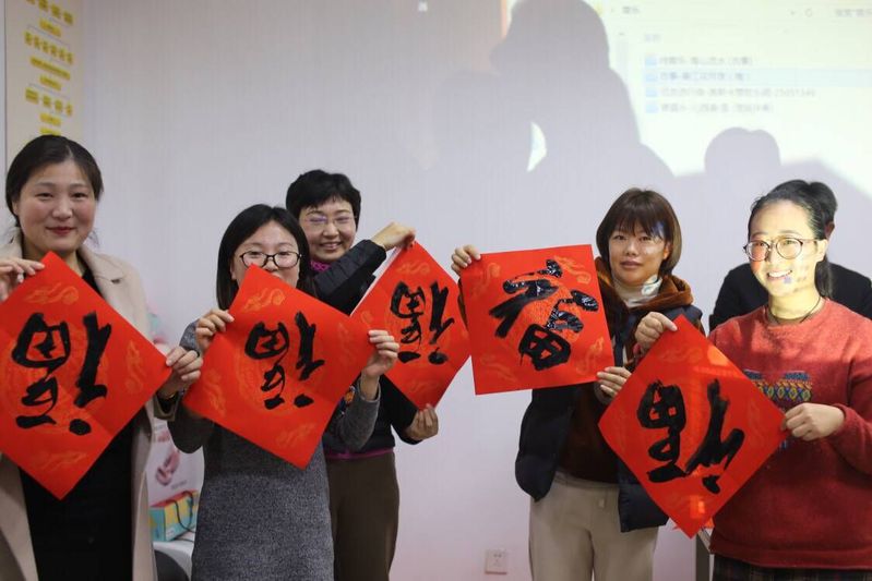 上午的活动现场,人文社科学院两位年轻的副院长陶德胜、吴歧范老师还进行了中国书法展示及新春书写福字、送春联环节;体育教研室程叶老师的一首《广东爱情故事》抒发了浓浓的粤港澳风情;政治教研室戚福康副教授的两首诗朗诵《沁园春·雪》、《江城子•退休释怀》(高博特聘教授张权院长原创作品)声情并茂,大气磅礴。陶德胜和崔红梅老师的一首《华山论剑》表达了大学教师们的剑胆琴心、侠骨柔情,将活动气氛推向高潮。