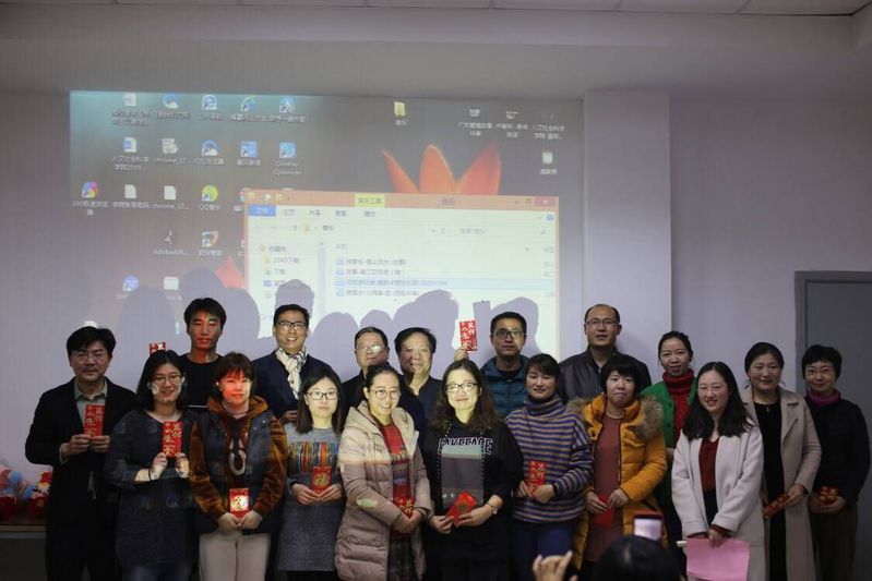 窗外虽是三九严寒,人文社科学院会议室活动现场却喜气洋洋,春意融融,一派春气息。迎新年会准备了精彩纷呈的节目内容。首先举行的是2018学院教科研成果奖颁环节,体育教研室张赞老师现场演示了2018学院微课比赛一等奖成果《单手肩上投篮》,动感的艺术画面与娴熟的专业技术展示令现场的教师们大开眼界,获益匪浅。接下来的教工才艺展演环节,高博外语系的英语老师们表演了风趣高雅的《三句半》,把活动推向小高潮;抽奖环节异彩纷呈,张权院长、张正炎副院长、陶德胜副院长、吴歧范副院长、崔红梅院长助理等纷纷为32名教工抽取了一、二、三等奖。