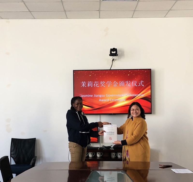 倪筱琴副校长首先向荣获2018年度江苏省茉莉花奖学金的留学生颁发了证书。2018年,我院共有10名留学生获此奖项,其中9名留学生来自我院与西印度大学合办的“中国信息工程学院”,并且这是我院历年来获奖人数最多的一次。西印度大学希拉里校长为此向朱秀林校长发来感谢信,感谢高博给予留学生的帮助。
