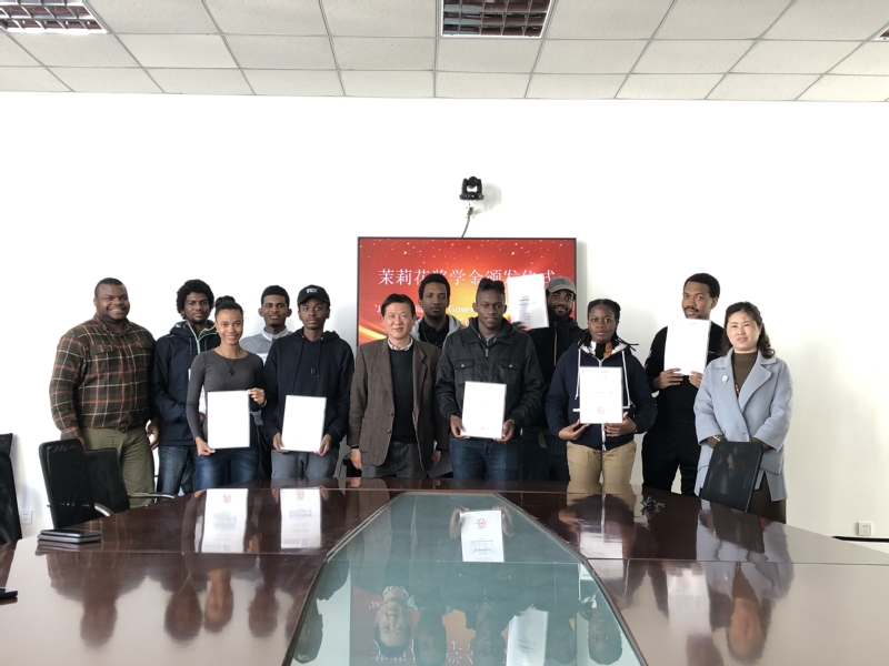 倪筱琴副校长首先向荣获2018年度江苏省茉莉花奖学金的留学生颁发了证书。2018年,我院共有10名留学生获此奖项,其中9名留学生来自我院与西印度大学合办的“中国信息工程学院”,并且这是我院历年来获奖人数最多的一次。西印度大学希拉里校长为此向朱秀林校长发来感谢信,感谢高博给予留学生的帮助。