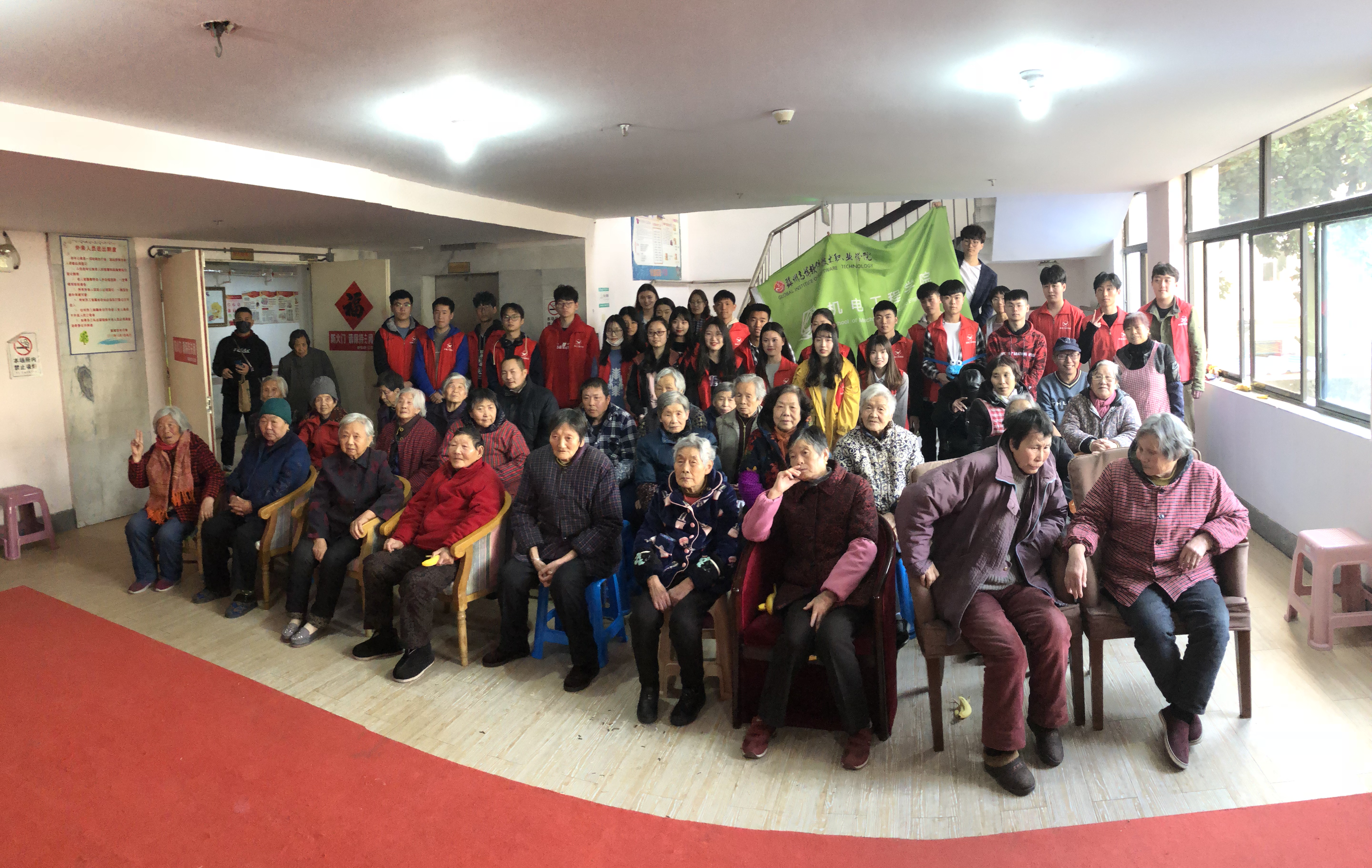 为进一步推动良好、和谐的社会风气,弘扬雷锋精神,增强大学生的社会责任意识与奉献意识,机电工程学院青年志愿者们在机电工程学院团委书记孙宇珊老师的带领下,于2019年3月16日中午前往姑苏区新家老年公寓开展了“践行雷锋精神,敬老院慰问”志愿服务活动。