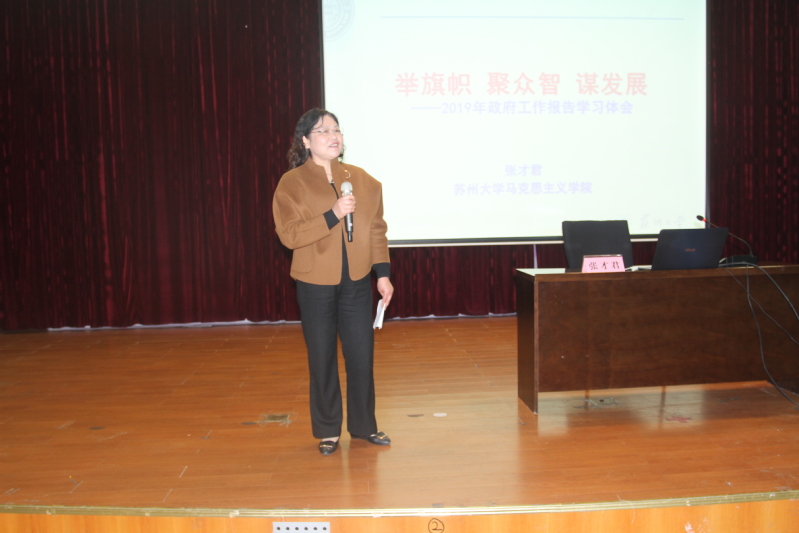 2019年4月3日下午14:00,“举旗帜,聚众智,谋发展——2019年政府工作报告学习体会”专题讲座在苏州高博软件技术职业学院报告厅举行。