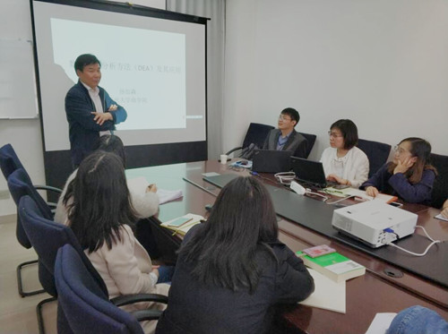 孙加森教授以“数据包络分析方法(DEA)及其应用”为主题为大家做报告。他分别从DEA目前的国内外研究现状、简述、DEA具体模型以及如何应用DEA四个方面进行讲解,这对老师们的写作水平提升具有重要意义。同时孙教授也和大家分享了从事科研活动的思路,以及撰写高质量论文的心得和体会。活动座无虚席,气氛专注而热烈,听讲之余大家还针对所涉及的学术问题进行了提问,并收到了有效的解答。本活动不仅开拓了老师们在DEA及其应用领域的视野,使他们感受到前沿信息,同时对老师们研究的自主性和独特性的提高起到了良好的效果。(国际商学院 王东生)