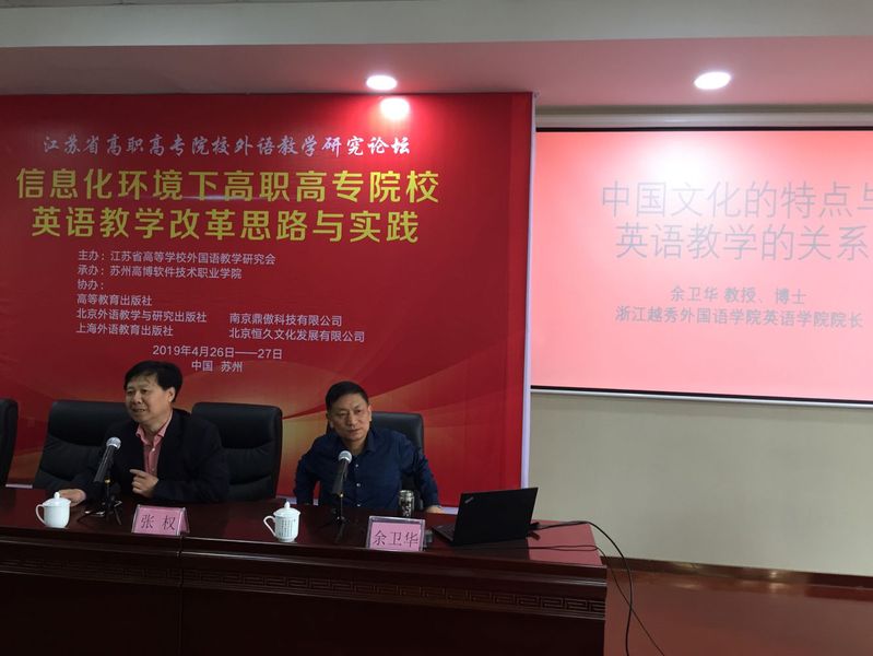 为进一步激发在校大学生们的语言学习积极性,增强学习兴趣与动力,增强人文学院的跨省、跨界社会影响力,4月23日,人文社科学院邀请到英国杜伦大学博士、教授,浙江省翻译协会副会长、国家社科基金同行评议专家,教育部学位中心论文评审专家、浙江省哲学社科发展规划“十三五”学科组专家、浙江省社科联专家库专家、教育部重点课题主持人,浙江越秀外国语学院稽山学者,英语学院院长余卫华博士来院成功举行了一场“中国文化的特点与英语教学的关系”的专题讲座。