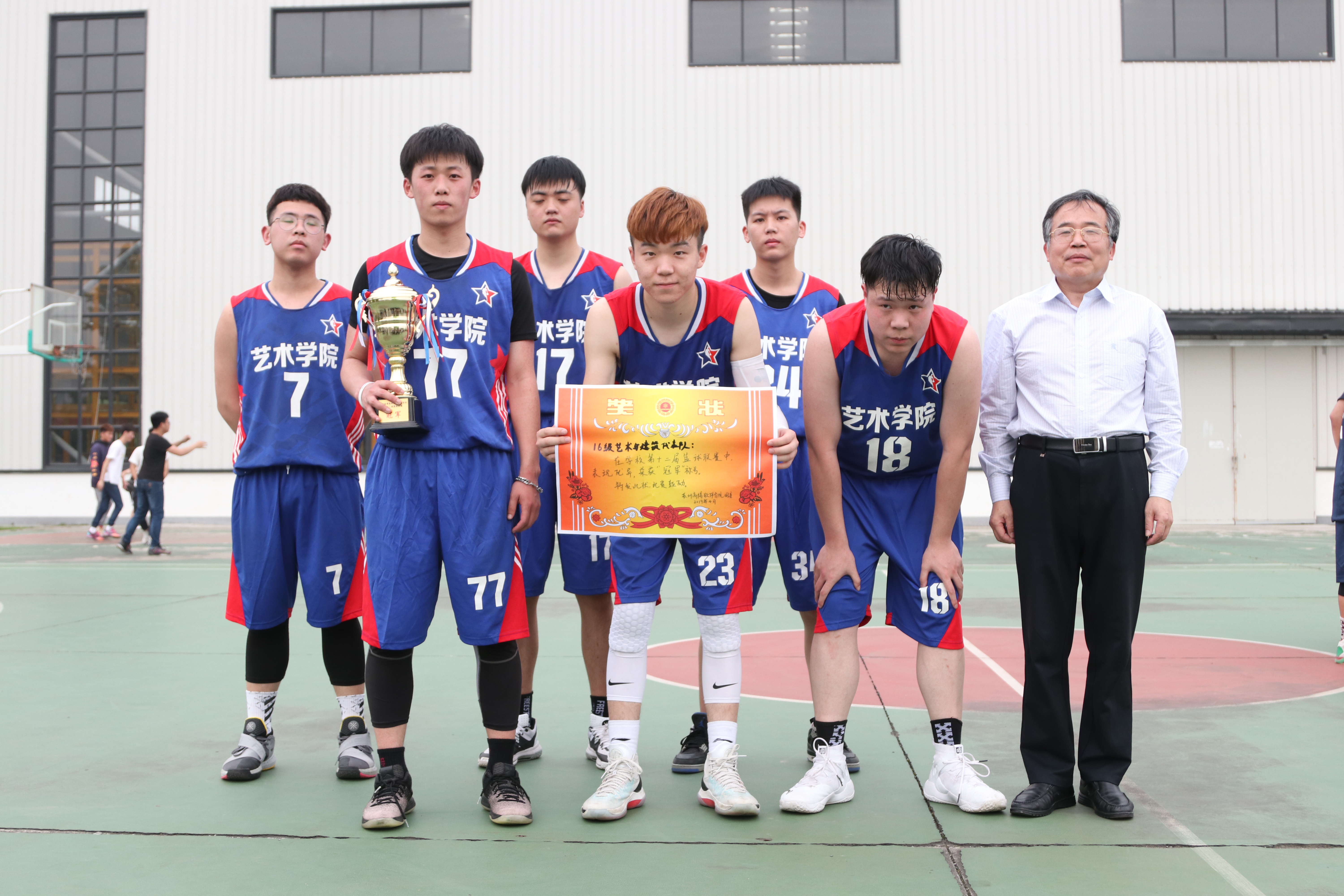 4月24日下午15:30苏州高博软件技术职业学院第十二届篮球赛总决赛正式开始。经过一次又一次的激烈角逐,奋力拼搏,最后争夺冠军的两支队伍是来自艺术与建筑学院16级学生代表队和信息与软件学院16级学生代表队。艺术与建筑学院党总支副书记纪冰心老师带领全体辅导员到场为队员们加油助威。