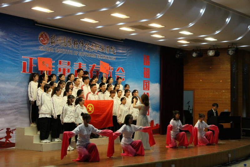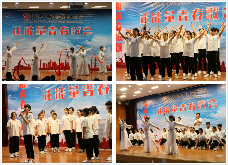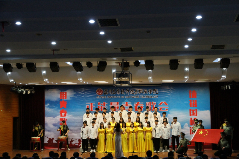 本次6个学院共组建了5支合唱团参加歌会,每个参赛队伍演唱两首曲目,分为必唱曲目和选唱曲目。必唱曲目为《光荣啊,中国共青团》,选唱曲目是各二级学院从指定的40首正能量歌曲中挑选确定的曲目。《不忘初心》、《年轻的朋友来相会》、《中国力量》、《相亲相爱一家人》和《愚公移山》等正能量歌曲传唱不衰,高博学子激情飞扬,以饱满的热情唱响共产党好、社会主义好、改革开放好、伟大祖国好、人民生活好的时代主旋律。校大学生艺术团表演了舞蹈&朗诵《大写的中国》表达了高博学子对祖国的热爱和为祖国贡献青春的决心。