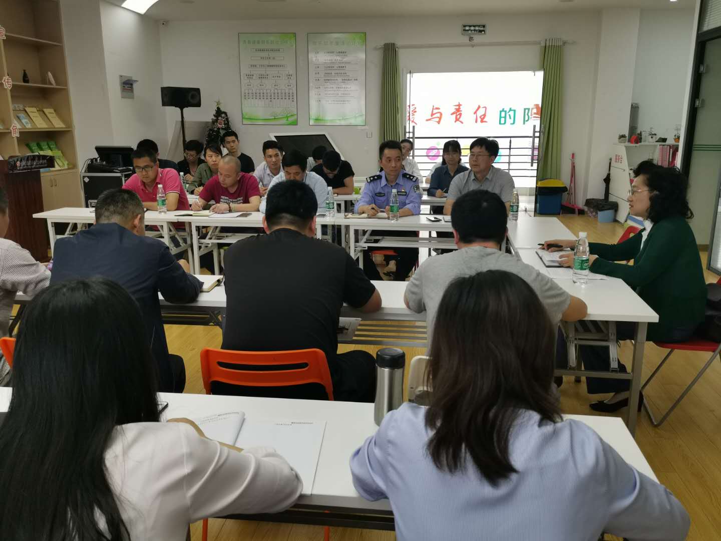 驻校民警李警官就学院警务室运行情况、今后的工作开展、目前安全形势做了分析通报。