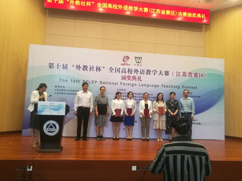 近两年,我院外语教师在各类教学比赛中得到了很好的锻炼,也取得了显著的进步。去年外语教师取得了第九届“外教社”杯全国高校外语教学大赛江苏赛区三等奖的好成绩。今年经过更加充分的准备,获得了“外教社”杯全国高校外语教学大赛江苏赛区二等奖的佳绩。是迄今为止,外语教师在各类教学比赛中取得的最好成绩。以后我们会在院领导的指导下,加强自身专业知识的学习,不断打磨教学方法,提升教学技能,再接再厉,再创辉煌。(供稿:人文社科学院)