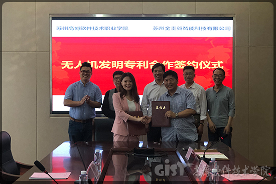 随后,苏州金圭谷智能科技有限公司总经理葛晨毓与机电工程学院院长廖振强代表双方签订合作协议,此次合作主要涉及17项无人机国家发明专利项目的研发,参会的公司与学校领导共同见证了这一时刻。