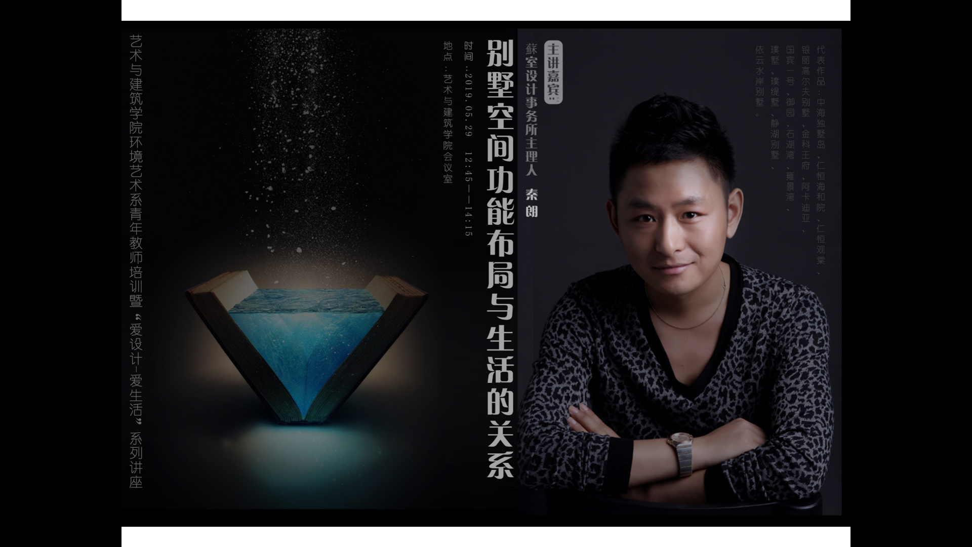 5月29日开展了首场讲座,活动主题为《别墅空间功能布局与生活的关系》。主讲嘉宾为蘇室设计事务所主理人:秦朗先生。秦朗先生就面积在500平方米、600平方米、700平方米的三个别墅方案设计进行详细讲解,从洽谈客户、客户分析、空间改造、方案表达、材料运用等多个方面进行分享。陈家颐副校长出席了此次活动。他指出,艺术学院要紧紧抓住时机,大力创造机会,借助企业之力,打造一支稳定的专兼结合的专业教师队伍,加强专业内涵建设,提升专业影响力。