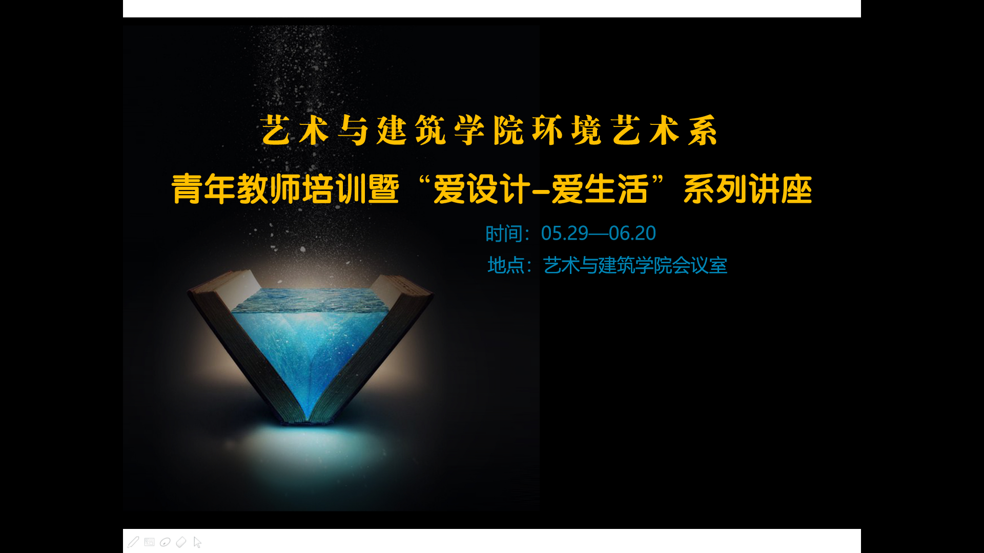 为了加快优秀教学团队建设步伐,艺术与建筑学院环境艺术系联合多家校企合作单位,共同推出“艺术与建筑学院环境艺术系青年教师培训暨‘爱设计-爱生活’”系列讲座活动。系列活动旨在帮助青年教师成长,打造一支“业务精湛、敬业爱生、拼搏奉献、开拓创新”的青年教师队伍,提升团队精神,促进青年教师队伍的整体优化。本次活动计划进行6场,每一场一个主题。