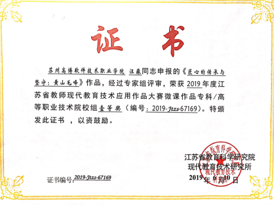 “江苏省教师现代教育技术应用作品大赛”是江苏省教育科学研究院现代教育技术研究所主办面向全省广大教师的年度性学术竞赛活动,从3月初接到赛事通知后,我院教师积极参与,认真备战,充分展示了现代教育技术在教学领域应用的成果,为学院赢得了荣誉。获奖老师如下: