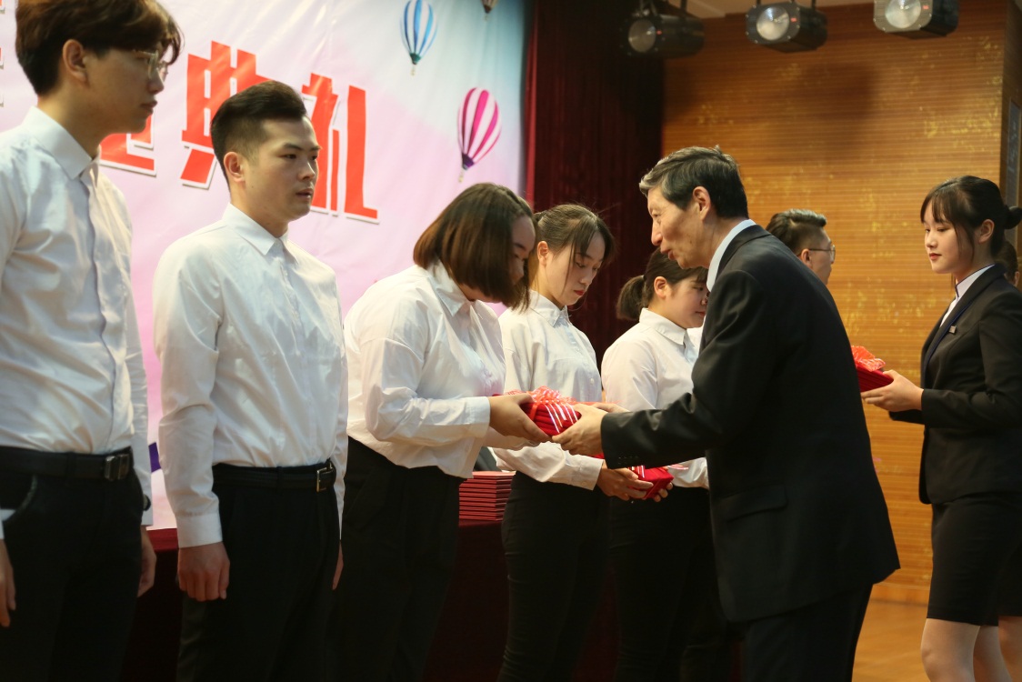 其后陈家颐副院长分别宣读了关于表彰2019届优秀实习生、优秀毕业设计(论文)、优秀毕业生的决定。紧接着朱秀林校长亲自为优秀毕业生代表颁发荣誉证书,获奖同学上台接受荣誉证书,分享荣耀时刻。