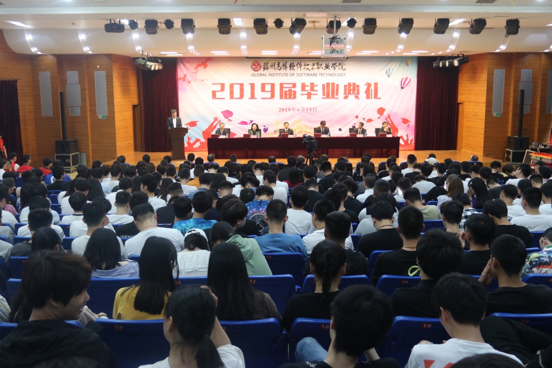 2019年6月14日上午10点,苏州高博软件技术职业学院2019届毕业典礼在学校报告厅隆重开幕。2019届毕业生、校领导、各二级学院院长、部门负责人、教职工代表等参加了此次典礼,见证了同学们毕业的喜悦与激动。毕业典礼由徐子良副院长主持。