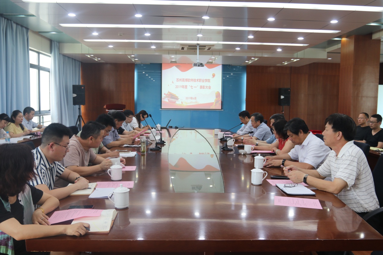 2019年6月28日下午14:00,学院党委在实训楼会议室召开2019年度“七·一”表彰会暨党建工作布置会,党委书记朱秀林、党委副书记倪筱琴、徐子良、副院长陈家颐、张建初、组织部、宣传部负责人、各党总支书记、副书记、党支部书记、党员代表等参加了会议,会议由党委副书记倪筱琴主持。