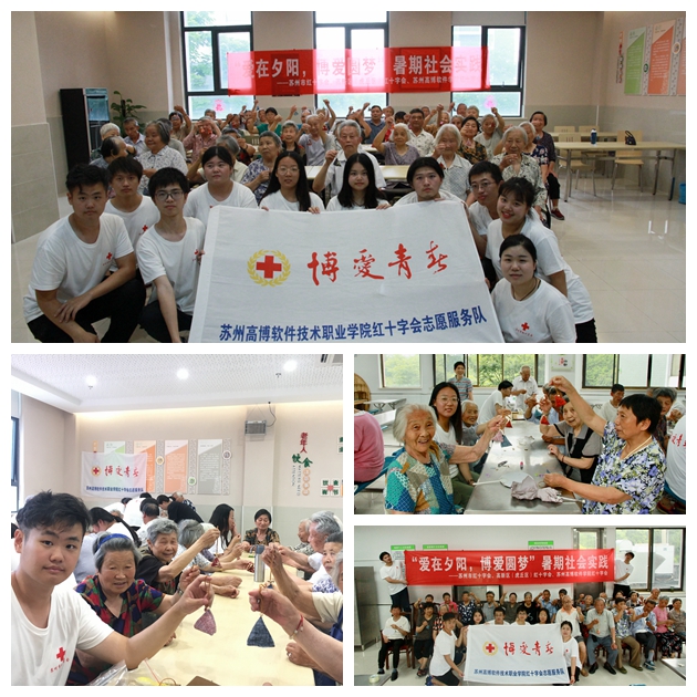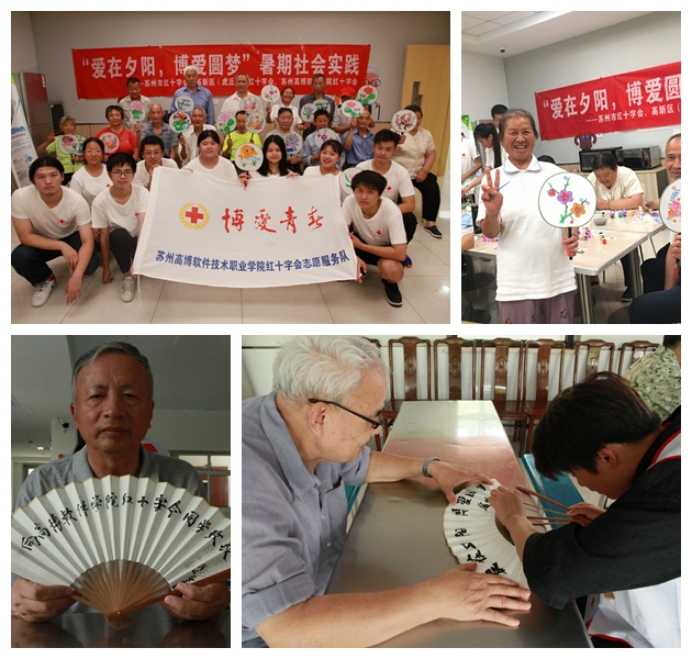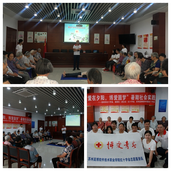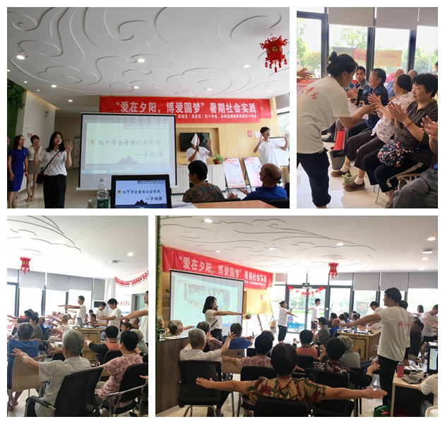我院红十字会志愿者魏萍告诉记者说,他们是苏州市红十字会2019年“博爱青春”暑期社会实践九个市级项目之一——“爱在夕阳,博爱圆梦”暑期社会实践项目;项目主要集中在阳山敬老院、东渚龙景社区和东渚龙惠社区开展,面向老人,弘扬人道、博爱、奉献的红十字精神。为践行红十字会精神,“爱在夕阳,博爱圆梦”暑期社会实践小分队精心设计了方案,围绕主题,从项目宣传、专业学习、实践内容三个方面开展活动。