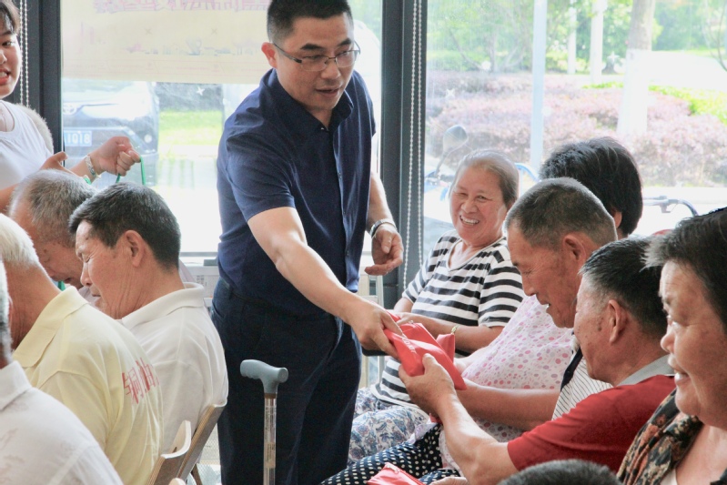 高新区(虎丘区)红十字会会长许雪明给老人分发防暑防暑降温包