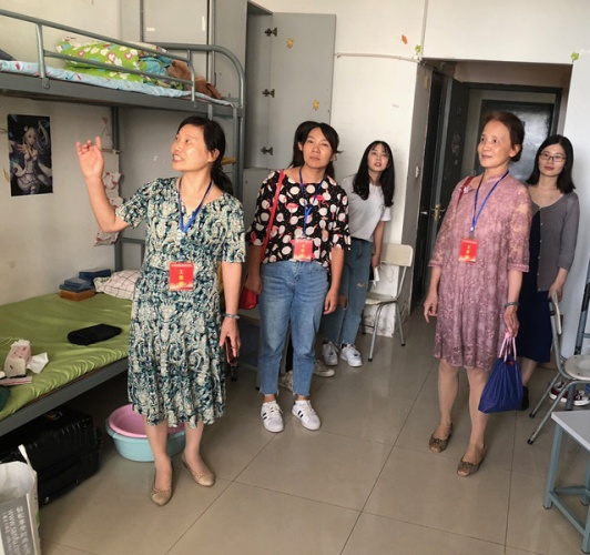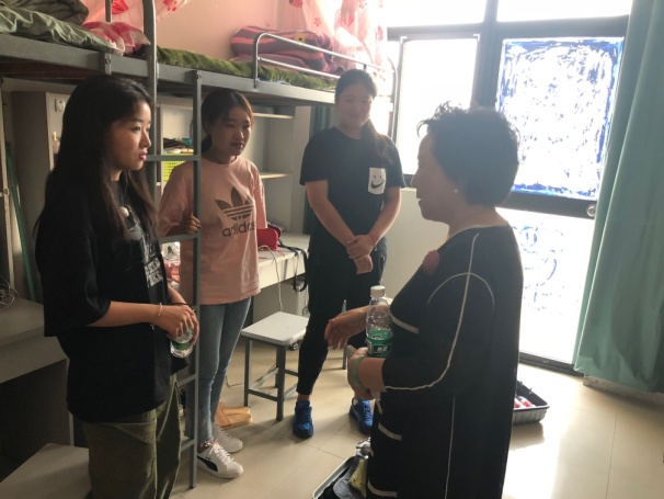 随后,学院领导、新生辅导员和学生干部深入宿舍,走访看望新生。每走进一间宿舍,都会亲切地同新生交谈,亲切询问大家来自哪里、入学报到是否顺利、是否适应学校的环境等。薛小玲院长特别嘱咐新生们要尊师重道,团结同学,严格要求自己,彰显专业素养。