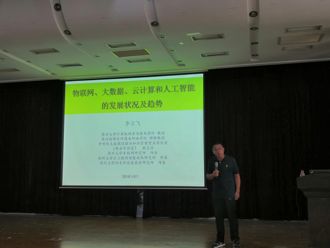 9月11日下午,信息与软件学院特聘教授李云飞在报告厅为学院全体大一、大二、大三学生作了一场题为 “云计算、大数据和人工智能发展状况及趋势”讲座。