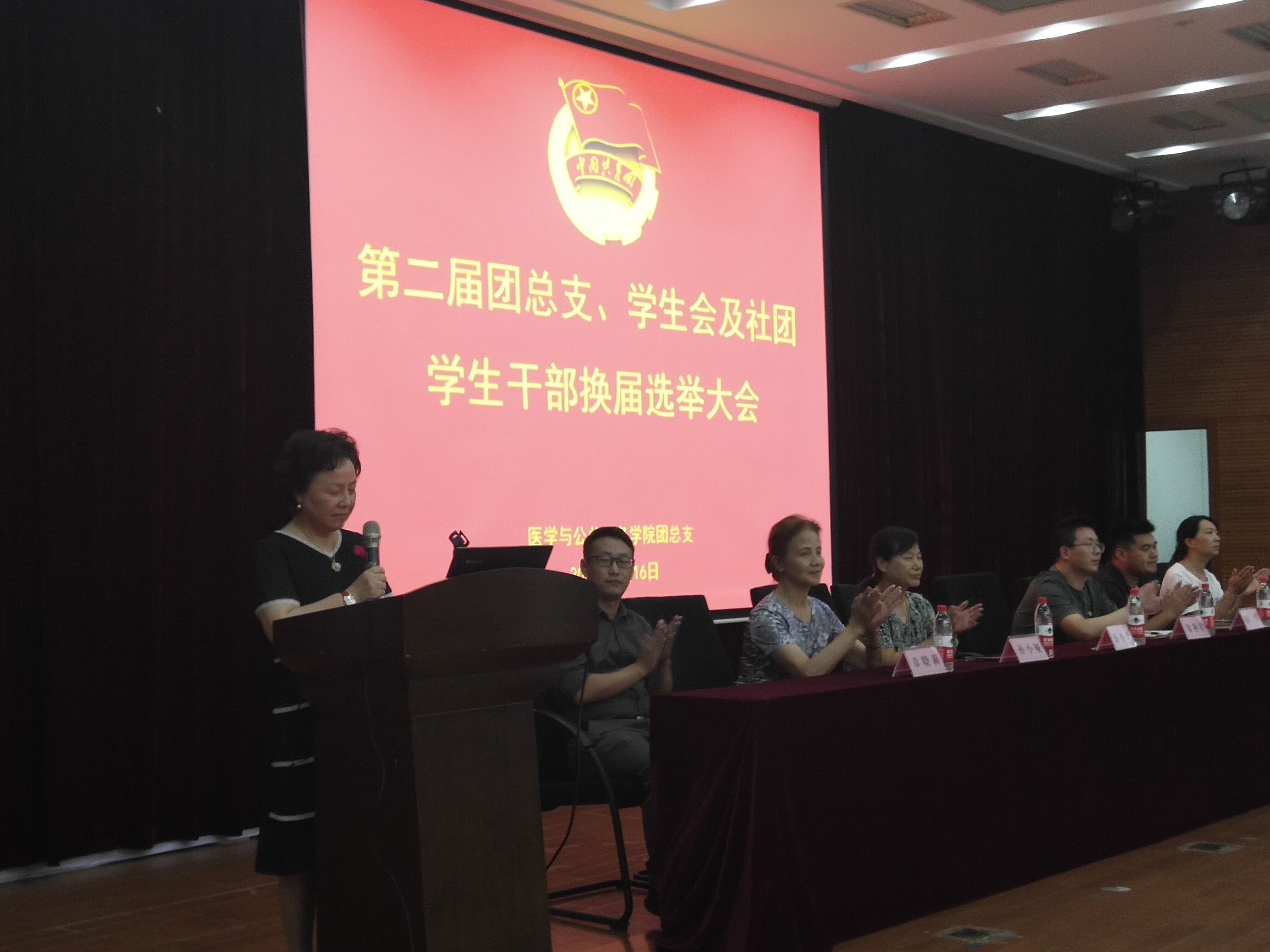 2019年9月16日晚18:00,医学与公共服务学院第二届团总支、学生会及社团学生干部换届选举大会在校学术报告厅顺利举行,大会由医学与公共服务学院学生工作办公室主任赵洪鹏主持。校长特别助理、医学与公共服务学院名誉院长薛小玲,校学生工作处处长邹艳星,副处长、校团委书记胡赛,医学与公共服务学院院长孙小娅、副院长章晓莉、副院长马亚丽,第一届团总支、学生会全体学生干部,教师选举人及学生选举人、候选人,以及学院全体教师、同学出席了本次大会。