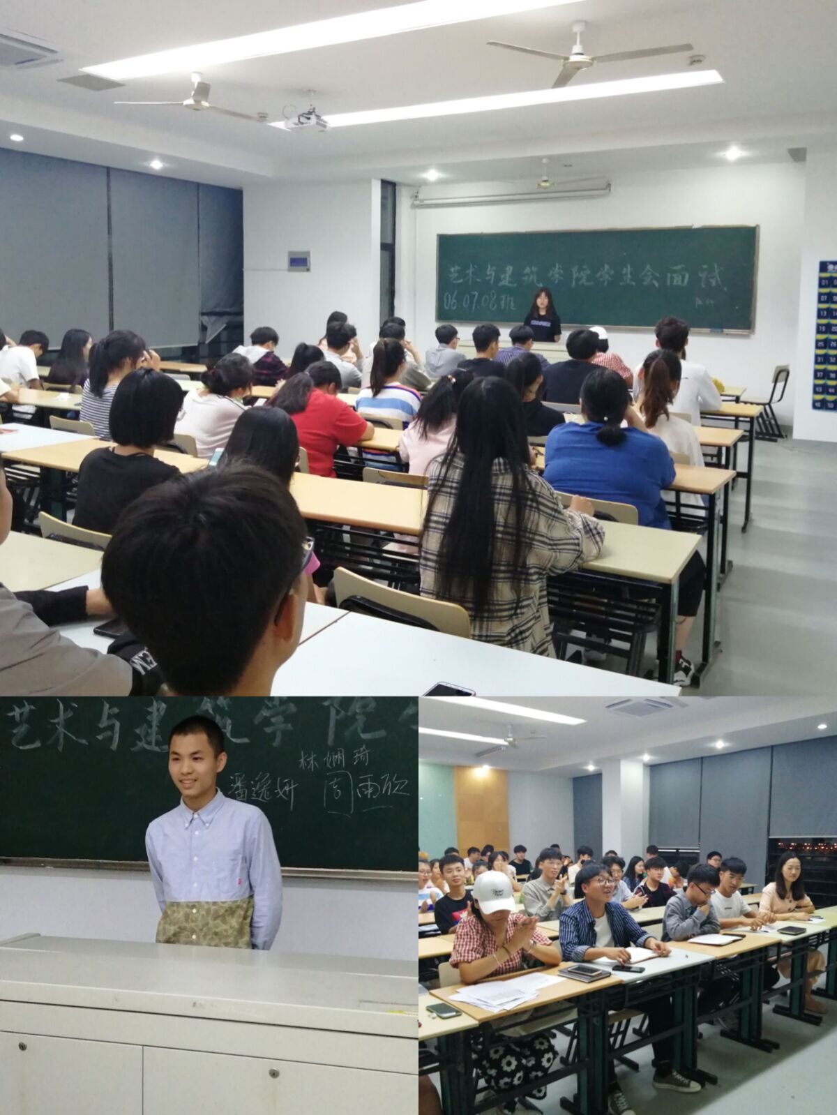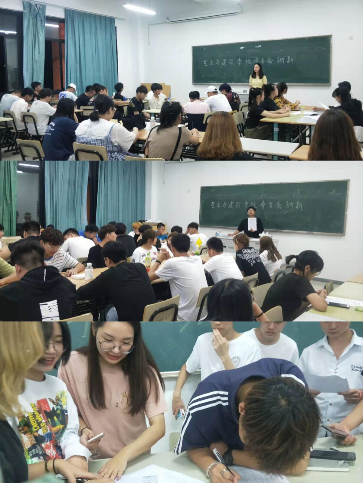 9月19日晚18:30,艺术与建筑学院团委学生会在教学楼520教室开展纳新活动。学生会“老”成员提前对活动现场进行了布置。本次招新面试采用“三对一”的形式:三位负责人面试一位同学,通过自我介绍、才艺展示、现场应答能力来考察新生对于所加入部门的了解和自身能力。此次学生会纳新活动,充分表现出我院学生积极向上的精神面貌,展现出了新时代下大学生燃烧的激情。(艺术与建筑学院团委)