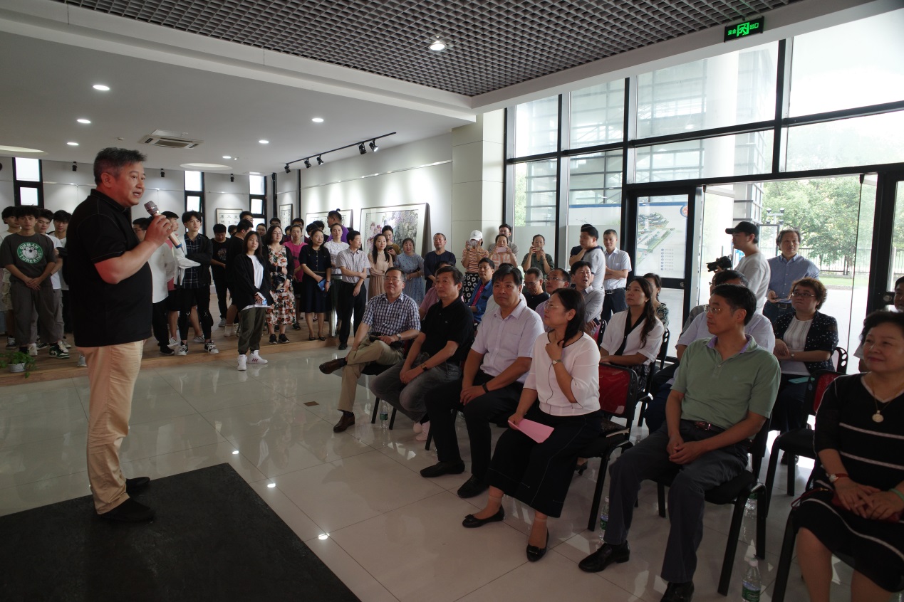 图1:我校师生参加首届高博师生美术作品联展开幕仪式
