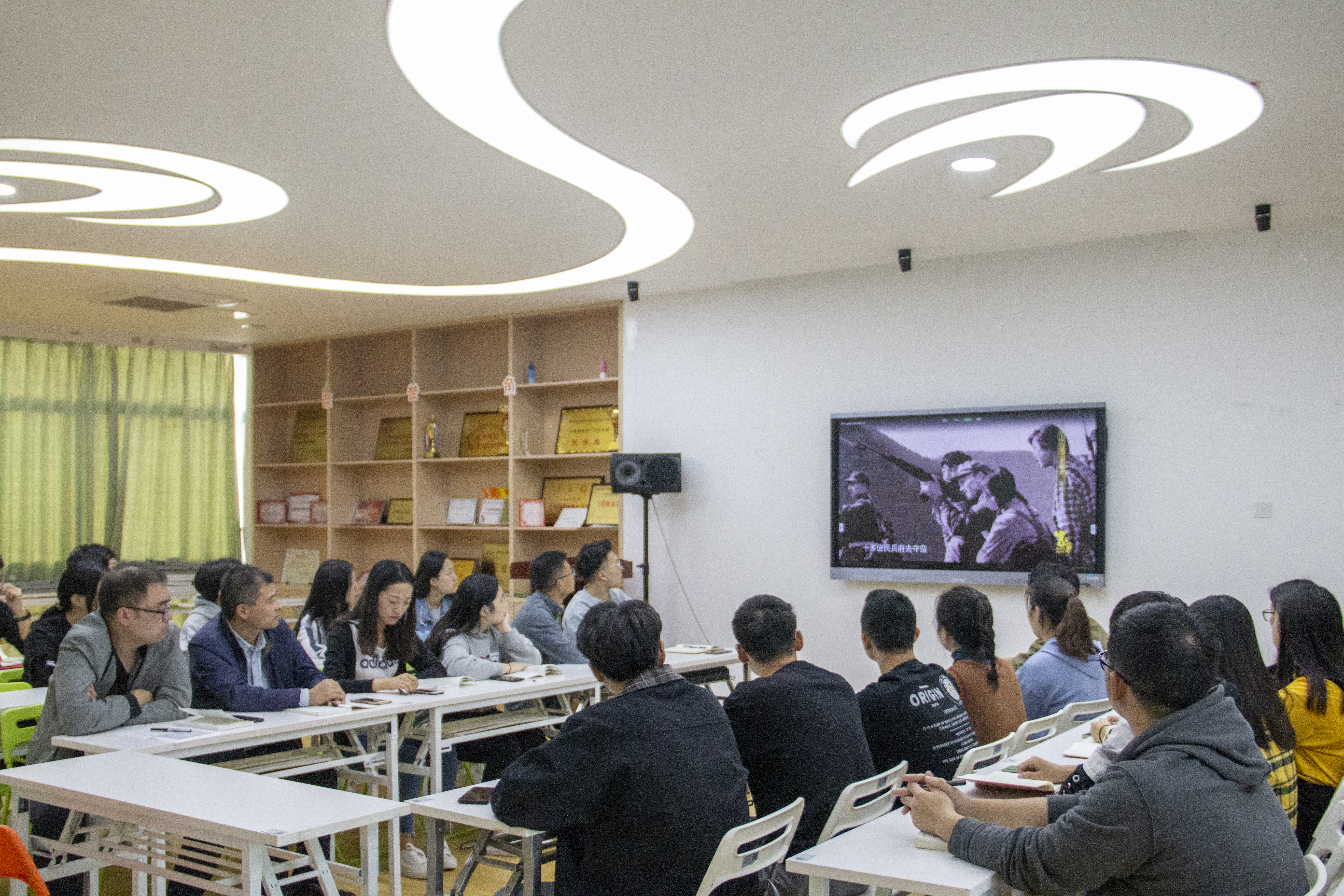 随后,大家观看了电影纪录片《王继才-岛就是国 岛就是家》,该影片讲述了感动中国2018年度人物王继才与妻子王仕花32年来守护在开山岛,把青春年华全部奉献给了祖国海防事业的感人事迹。王继才生前是灌云县开山岛民兵哨所所长、开山岛村党支部书记。1986年,王继才奉命守卫黄海前哨开山岛。32年来,他与妻子王仕花一起,以海岛为家,无怨无悔,默默坚守。2014年,王继才夫妇被评为全国“时代楷模”。2018年7月27日,王继才在岛上突发疾病,经抢救无效去世,年仅58岁。王继才同志牺牲后,习近平总书记作出重要指示,高度肯定王继才同志的光辉事迹,要求大力倡导爱国奉献精神,使之成为新时代奋斗者的价值追求。中共中央追授王继才同志“全国优秀共产党”称号