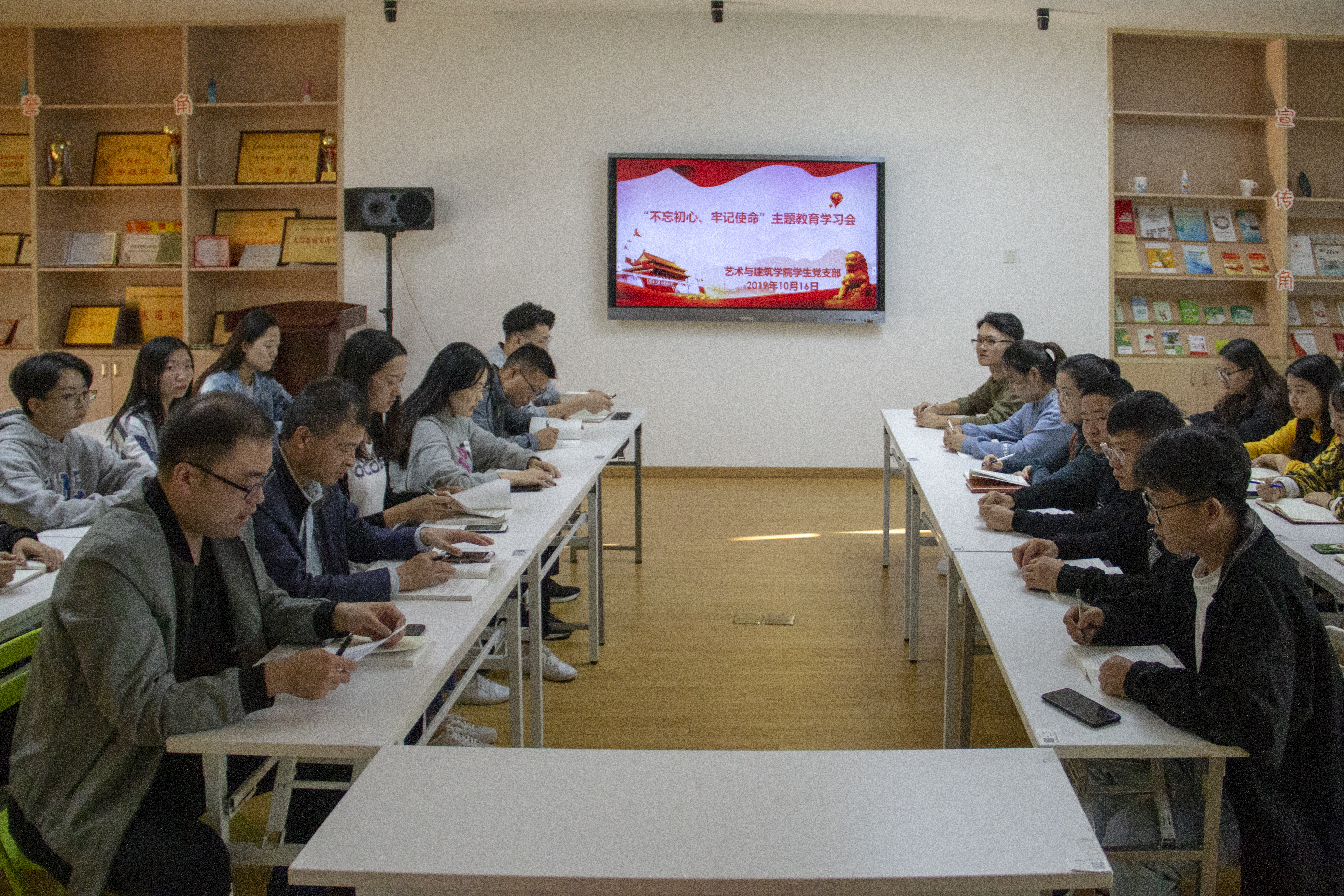 为了认真贯彻学习校党委关于“不忘初心、牢记使命”主题教育工作精神,艺术与建筑学院学生党支部于2019年10月16日下午4时在青春健康俱乐部召开“不忘初心、牢记使命”主题学习会,参加会议的有艺术与建筑学院学生党支部全体党员教师、2019年学生党员发展对象以及入党积极分子,会议由艺术与建筑学院学生党支部书记程前主持。