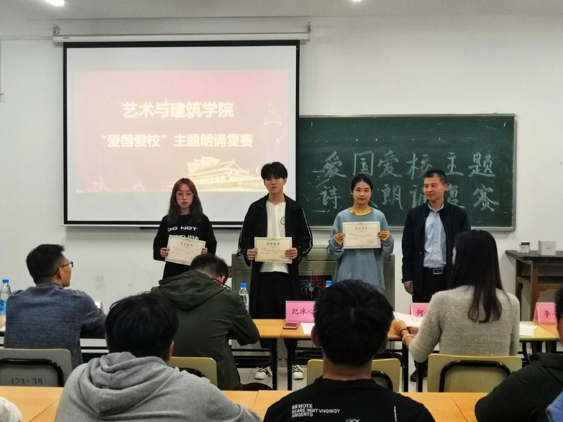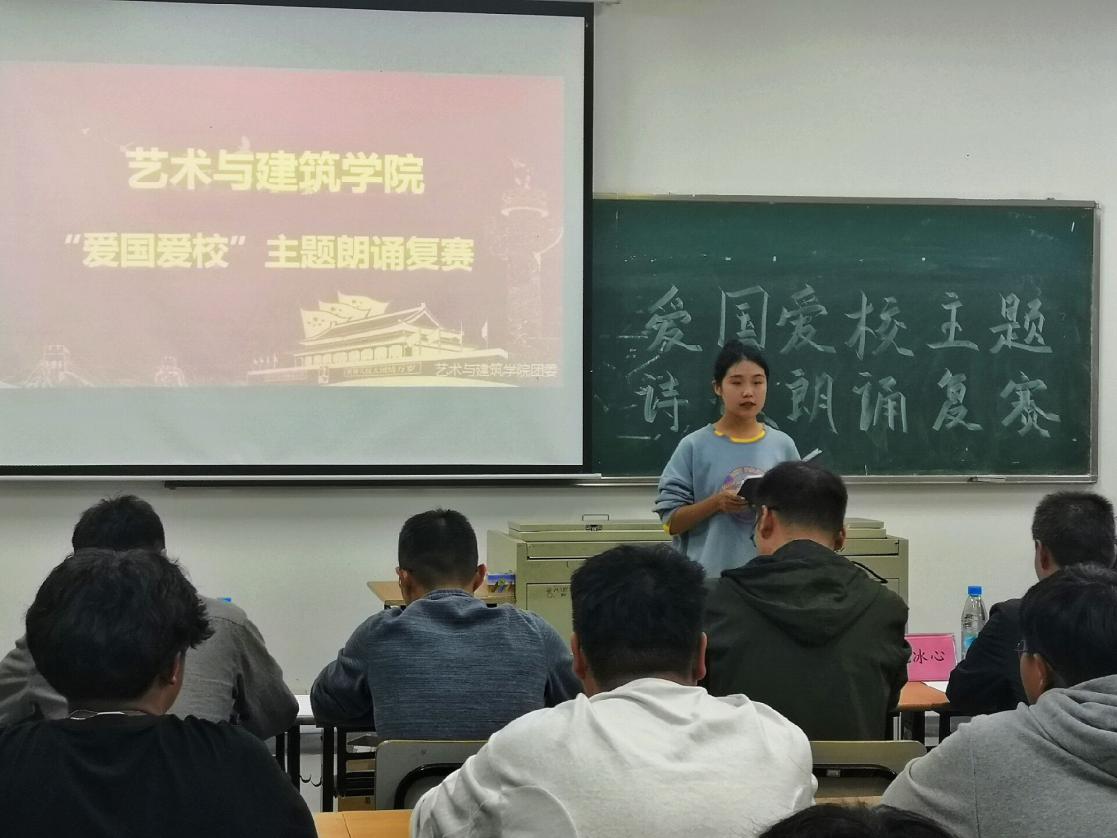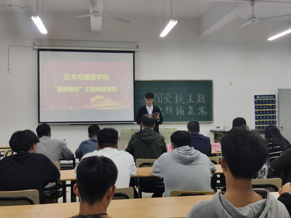 为积极响应我校爱国教育工作,艺术与建筑学院开展了以“爱国爱校”为主题的朗诵比赛。通过初赛的12