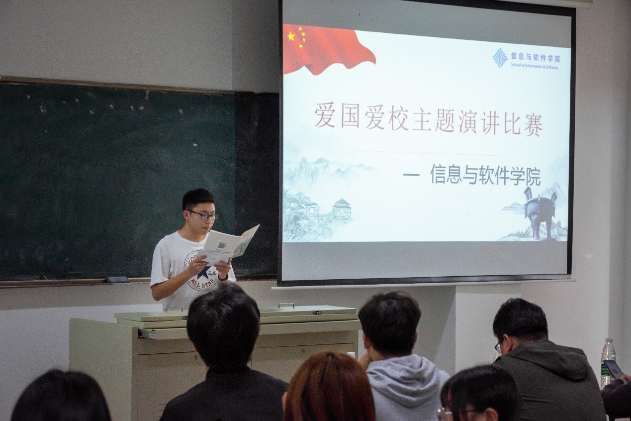 为了弘扬我校学生的爱国主义精神,培养学生热爱国家的责任感,增强学生的学校主人翁意识。信息与软件学院于10月21日下午举行了以"爱国爱校"为主题的演讲比赛,旨在号召学生在生活的点点滴滴中矫正自己的行为,砥砺自己的性情,培养健康的人格,养成高尚的品德,端正校风。