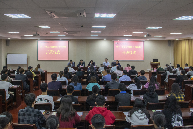 为深入学习党的十九大会议精神,提高我校入党积极分子的党性修养,教育引导大学生入党积极分子端正入党动机,增强执行党在新时代的路线、方针、政策的自觉性和能力,激发同学们的爱党爱国情怀,10月24日晚18:00,学校第二十五期入党积极分子培训班开班仪式在行政楼215学术报告厅隆重举行,学校党委副书记倪筱琴教授出席开班式并发表动员讲话。学校党委学工部部长邹艳星,人文社会科学学院副院长、社科部主任吴歧范,党委学工部副部长、校团委书记胡赛以及各学院党总支副书记、分团委书记、学生党支部书记、辅导员代表和128名入党积极分子共同参加开班式,开班式由学校党委委员、组织部部长王绍福主持。