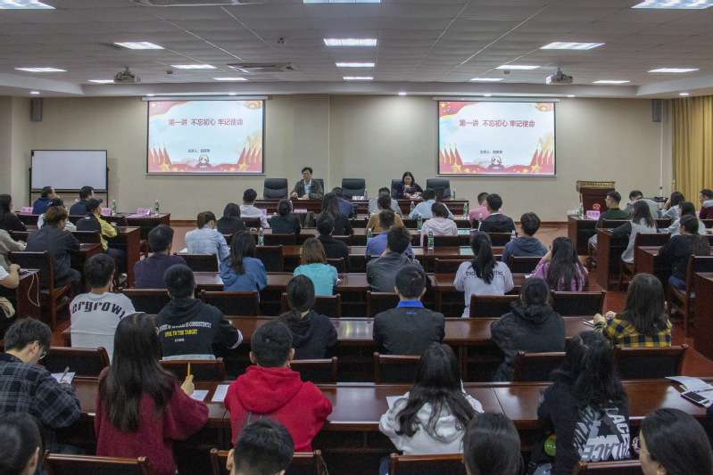 接下来,党校培训正式开始。第一讲“不忘初心、牢记使命”主题教育分别由倪书记和艺术与建筑学院党总支纪冰心副书记主讲。倪书记带领大家共同学习了“共产党人的初心和使命”、“为什么要强调不忘初心、牢记使命”和如何做到“不忘初心、牢记使命”,并要求全体学员要守初心、担使命、找差距、抓落实,最关键在抓落实上;要增强忧患意识、危机意识、市场意识,围绕人才培养,积极推进招生、教学、学生管理等工作,解决学校发展中的短板和突出问题;更要勇于变革、勇于创新,推动学校更快、更好发展。纪书记讲述了“张富清——深藏功名 淡泊名利”、“王继才——以岛为家 守岛为国”和“黄文秀——情系家乡 立志扶贫”三位不忘初心、立志报国的时代楷模典型事例;并呼吁全体学员要爱祖国、爱学校、立志向、竖目标、脚踏实地和奋勇拼搏。