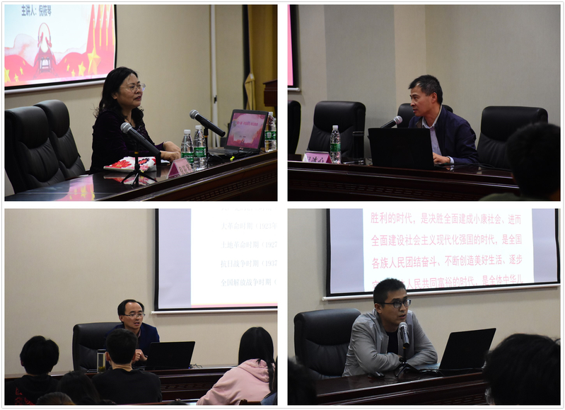 第一讲“不忘初心、牢记使命”主题教育分别由党委副书记倪筱琴教授和艺术与建筑学院党总支副书记纪冰心老师主讲。第二讲“十九大新党章解读”由党委组织部张娟娟老师主讲。张老师为同学们概述并回顾了历届党章、解读了十九大新党章,介绍学习党章的方法和发展党员的流程。第三讲“党的历史、优良传统”由人文社会科学学院副院长、社科部主任吴歧范老师主讲。吴院长带大家回顾了98年来,党带领全国人民革命、建设和改革的伟大历程和辉煌成就,然后着重介绍了党的“三大优良传统”和“自力更生、艰苦奋斗”作风,联系“群众路线教育实践活动”、“两学一做教育实践活动”,并结合大学生的实际生活进行讲解。第四讲“大学生怎样为实现党的目标和任务而奋斗”由人文社会科学学院党总支副书记张志豪老师主讲。张老师结合实际,对入党积极分子提出了期望和要求,希望同学们全面发展,在各方面起表率作用,鼓励大家把个人梦同国家梦结合起来,努力工作和学习,在以后的工作中爱岗敬业,全心全意为同学们服务。