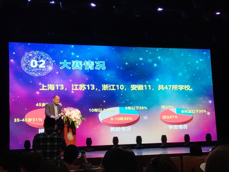 本次比赛是在长三角三省一市范围内展开的教师课堂教学与教学设计大赛,为教师搭建了交流平台,通过比赛教师谈论教学方法,切磋教学技术,互通有无。大赛分为两个阶段,我校教务处在各院推荐基础上报送6名教师参加第一阶段初赛。经初赛评审组评审,江苏省共计20名教师入围决赛,其中张金威老师凭借作品《3D软件基础——车削命令的运用》以高职实践教学组(江苏赛区)第一名的好成绩代表我校参加11月15日在上海举行的决赛。决赛当天参赛教师们被分为8组,每组10人同场竞技,经过三小时的比拼,最终评选出优秀奖40名,三等奖24名,二等奖12名,一等奖4名,共计80项奖项。张金威老师在现场决赛中,将混合式教学理念融入教学设计,契合信息化教学的时代背景,通过现场说课最终获得大赛三等奖。