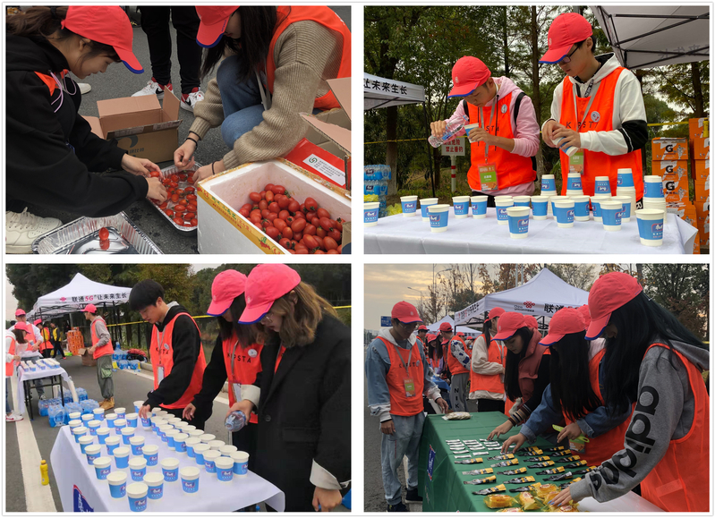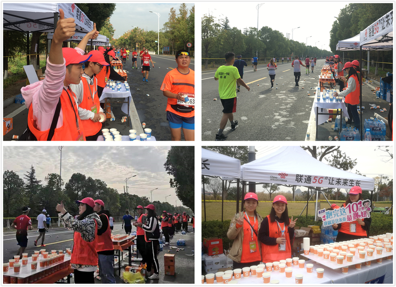 凌晨四点半,天还没亮,志愿者们已经集合完毕,奔赴服务站点开启志愿服务工作。志愿者到达指定岗位后就开始工作,首先将物资搬运至各补给站,并将补给品摆放有序。搬运过程中不乏女生们的身影,她们没有叫苦叫累,这样精益求精的准备工作只为给参赛选手提供更贴心的保障和服务。八点半,参赛选手们在武警摩托车队及警车的引导下陆续经过由我校志愿服务站点20km和32.5km补给站,所有志愿者竖起拇指,为参赛选手们加油鼓励的同时,递上能量棒及水杯,引导选手们及时前往补给站补充体能。不少参赛选手对他们投以微笑,并对他们的服务表示感谢,赞扬他们的贴心,更有参赛者希望与志愿者合照留念,选手们的肯定与支持是对志愿者工作的最大鼓舞。十二点半,赛程接近尾声,志愿者们却丝毫没有松懈,他们清理现场,徒手捡起马路上各种垃圾,清点剩余物资,协助工作人员完成赛事收尾工作,以确保交通得以迅速恢复畅通。志愿服务活动落下帷幕后不久,朋友圈就被志愿者们刷屏,他们纷纷晒出自己的感想和照片与其他同学分享。志愿服务的过程虽然累,但他们却乐在其中,这就是志愿者精神。
